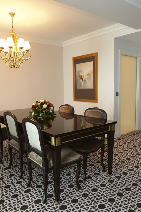 D’une superficie de 105 m², la Suite Présidentielle est un lieu exclusivement destiné aux hôtes qui savent apprécier le luxe, la calme et la beauté. Ayant la meilleure vue sur l’Océan Atlantique par ses larges fenêtres panoramiques, la Suite Présidentielle est décorée dans un style classique, exclusif et glamoureux. La Suite Présidentielle est divisée en deux parties indépendantes. Dans la première, elle dispose d’un grand salon, d’une spacieuse salle à manger pour huit personnes et d’un bureau complètement équipé. Elle dispose aussi d’une salle de bain pour invités, en marbre de Carrara et équipée de toutes les commodités nécessaires, y compris une sélection de cosmétiques français haut de gamme Chopard. Située à l’étage supérieur de l’hôtel, vous trouverez dans sa chambre à coucher toutes les commodités dont vous aurez besoin, entre autres un excellent lit king-size, un grand dressing, un bureau et un salon pour y passer les meilleurs moments. Dans la chambre vous disposerez d’une salle de bain spacieuse, entièrement en marbre de Carrara, composée de deux parties indépendantes, avec une douche et une grande baignoire. Vous y trouverez aussi une sélection de cosmétiques français haute de gamme Chopard. La Suite Présidentielle met à votre disposition un minibar, coffre-fort électronique, wifi gratuit, Smart-tv dans le salon et dans la chambre à coucher avec plus de vingt chaînes internationales, peignoir, chaussons, serviettes de piscine et climatisation.